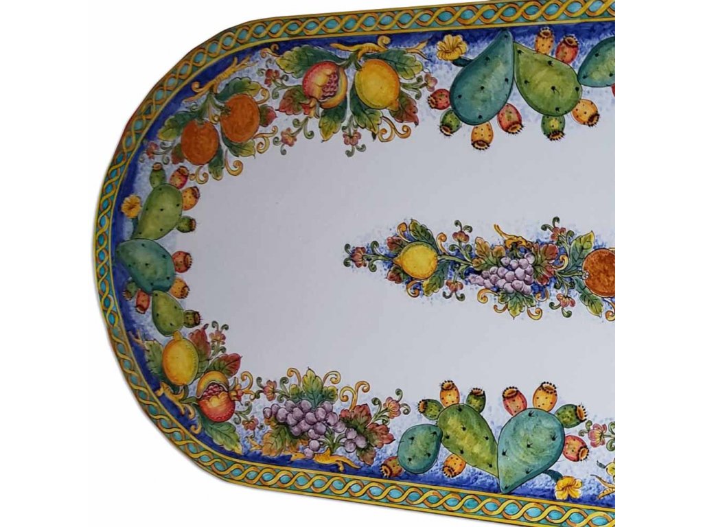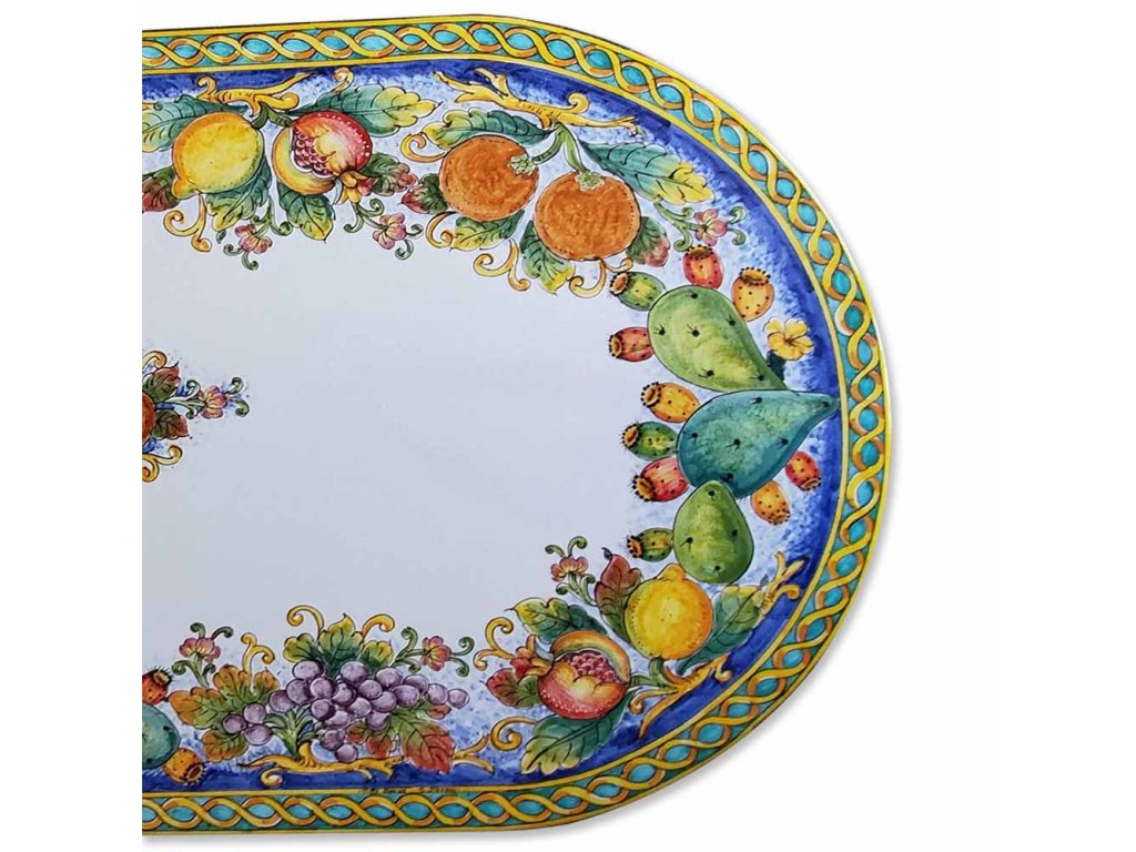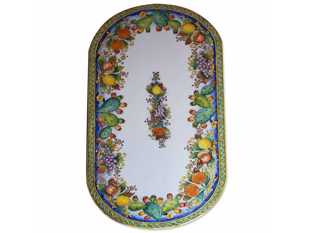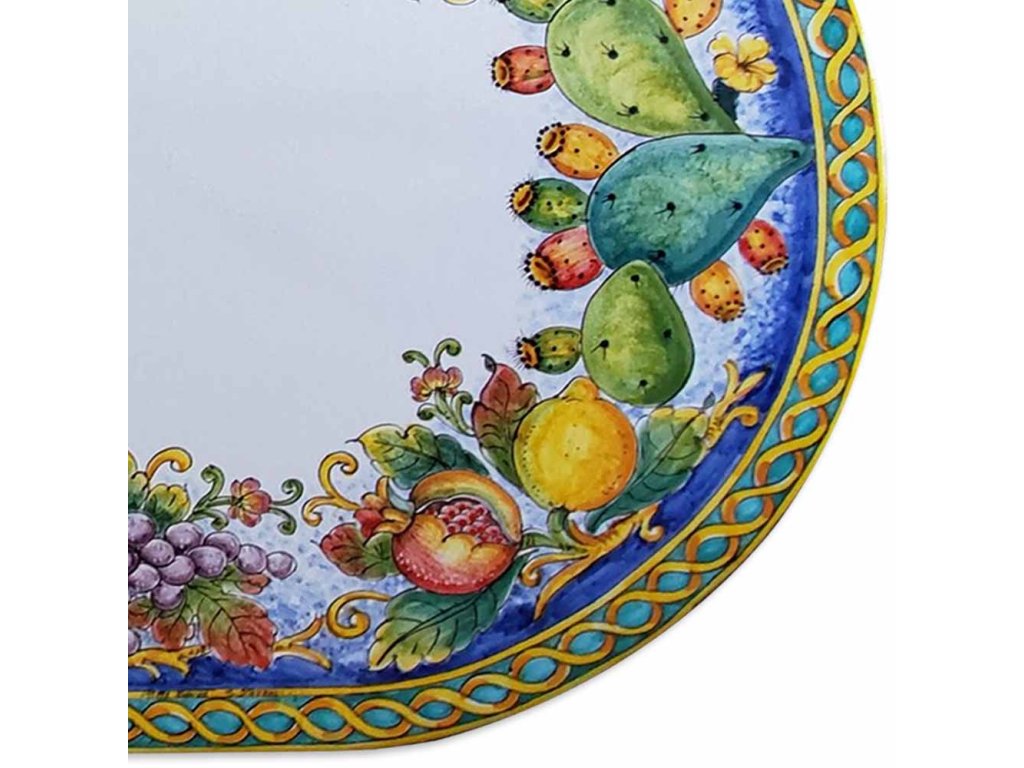 Černý lem lávového jádra dovezeného z Etny rámuje typicky sicilské barvy ručně malovaných dekorací.